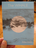 THE WHALE by Aidan Koch (Gaze Books): Aidan shares a certain sensibility with publisher (and cartoonist) Blaise Larmee -- her soft pencil drawings here feature softly spoken figures in elusive maritime landscapes, with erasings, scratching etc left visible. The story tells of a young woman by the sea, collecting the belongings of a friend after an only-hinted at accident. The Whale is gorgeous to look at, and evocative in its rendering. Slow, sad, and perfect. Highly recommended. 68 pages, 5" x 7"; two-color-cover, b+w interiors; $10.00.